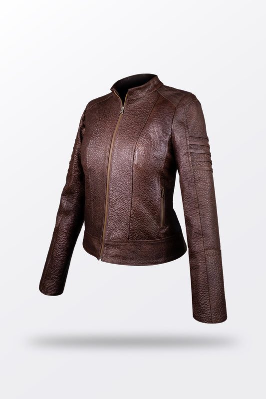 CHAMARRA CAFÉ OSCURO PIEL BISONTE DAMA